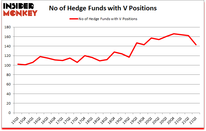 At the end of September, a total of 143 of the hedge funds tracked by Insider Monkey held long positions in this stock, a change of -12% from the previous quarter. By comparison, 160 hedge funds held shares or bullish call options in V a year ago. So, let’s find out which hedge funds were among the top holders of the stock and which hedge funds were making big moves.