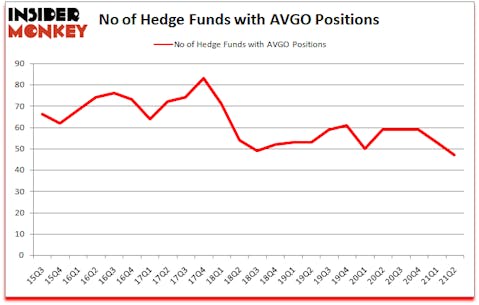 Broadcom Inc (NASDAQ:AVGO) investors should pay attention to a decrease in support from the world’s most elite money managers of late. Broadcom Inc (NASDAQ:AVGO) was in 47 hedge funds’ portfolios at the end of the second quarter of 2021. The all time high for this statistic is 83. There were 53 hedge funds in our database with AVGO holdings at the end of March. Our calculations also showed that AVGO isn’t among the 30 most popular stocks among hedge funds (click for Q2 rankings).
