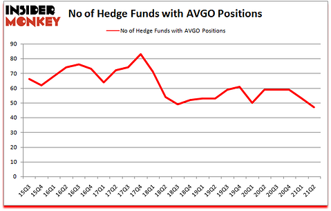 Broadcom Inc (NASDAQ:AVGO) investors should pay attention to a decrease in support from the world’s most elite money managers of late. Broadcom Inc (NASDAQ:AVGO) was in 47 hedge funds’ portfolios at the end of the second quarter of 2021. The all time high for this statistic is 83. There were 53 hedge funds in our database with AVGO holdings at the end of March. Our calculations also showed that AVGO isn’t among the 30 most popular stocks among hedge funds (click for Q2 rankings).