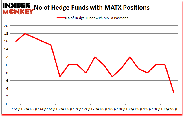 Heading into the second quarter of 2020, a total of 3 of the hedge funds tracked by Insider Monkey were bullish on this stock, a change of -70% from the previous quarter. Below, you can check out the change in hedge fund sentiment towards MATX over the last 18 quarters. So, let’s find out which hedge funds were among the top holders of the stock and which hedge funds were making big moves.