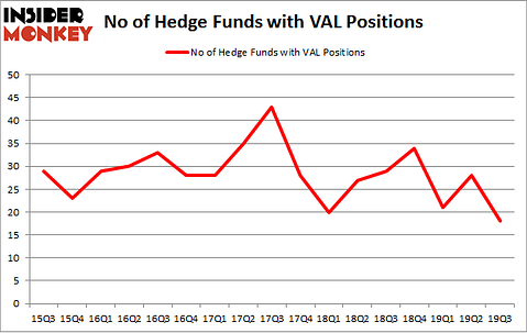 Heading into the fourth quarter of 2019, a total of 18 of the hedge funds tracked by Insider Monkey held long positions in this stock, a change of -36% from the second quarter of 2019. By comparison, 29 hedge funds held shares or bullish call options in VAL a year ago. With hedge funds’ positions undergoing their usual ebb and flow, there exists an “upper tier” of notable hedge fund managers who were increasing their holdings considerably (or already accumulated large positions).
