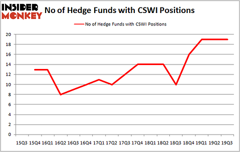 Heading into the fourth quarter of 2019, a total of 19 of the hedge funds tracked by Insider Monkey were long this stock, a change of 0% from the second quarter of 2019. On the other hand, there were a total of 10 hedge funds with a bullish position in CSWI a year ago. So, let’s see which hedge funds were among the top holders of the stock and which hedge funds were making big moves.