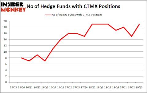At the end of the third quarter, a total of 19 of the hedge funds tracked by Insider Monkey were bullish on this stock, a change of 27% from one quarter earlier. Below, you can check out the change in hedge fund sentiment towards CTMX over the last 17 quarters. With hedgies’ positions undergoing their usual ebb and flow, there exists an “upper tier” of notable hedge fund managers who were upping their stakes meaningfully (or already accumulated large positions).