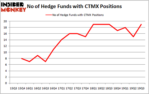 At the end of the third quarter, a total of 19 of the hedge funds tracked by Insider Monkey were bullish on this stock, a change of 27% from one quarter earlier. Below, you can check out the change in hedge fund sentiment towards CTMX over the last 17 quarters. With hedgies’ positions undergoing their usual ebb and flow, there exists an “upper tier” of notable hedge fund managers who were upping their stakes meaningfully (or already accumulated large positions).