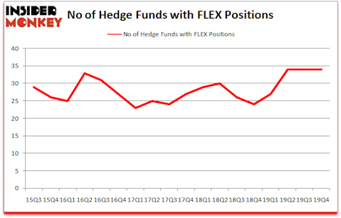 Heading into the first quarter of 2020, a total of 34 of the hedge funds tracked by Insider Monkey were bullish on this stock, a change of 0% from the previous quarter. The graph below displays the number of hedge funds with bullish position in FLEX over the last 18 quarters. With hedge funds’ positions undergoing their usual ebb and flow, there exists an “upper tier” of key hedge fund managers who were upping their holdings substantially (or already accumulated large positions).