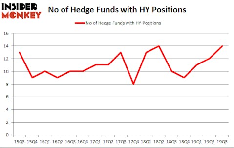 Hyster-Yale Materials Handling Inc (NYSE:HY) investors should be aware of an increase in enthusiasm from smart money recently. HY was in 14 hedge funds’ portfolios at the end of the third quarter of 2019. There were 12 hedge funds in our database with HY holdings at the end of the previous quarter. Our calculations also showed that HY isn’t among the 30 most popular stocks among hedge funds (click for Q3 rankings and see the video below for Q2 rankings).