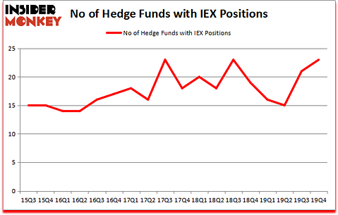 IDEX Corporation (NYSE:IEX) was in 23 hedge funds’ portfolios at the end of December. IEX shareholders have witnessed an increase in hedge fund sentiment in recent months. There were 21 hedge funds in our database with IEX holdings at the end of the previous quarter. Our calculations also showed that IEX isn’t among the 30 most popular stocks among hedge funds (click for Q4 rankings and see the video below for Q3 rankings).