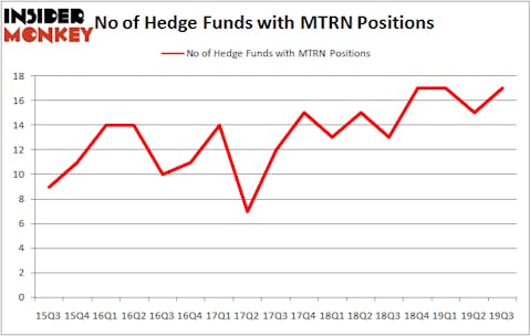 Heading into the fourth quarter of 2019, a total of 17 of the hedge funds tracked by Insider Monkey held long positions in this stock, a change of 13% from the previous quarter. By comparison, 13 hedge funds held shares or bullish call options in MTRN a year ago. So, let’s examine which hedge funds were among the top holders of the stock and which hedge funds were making big moves.