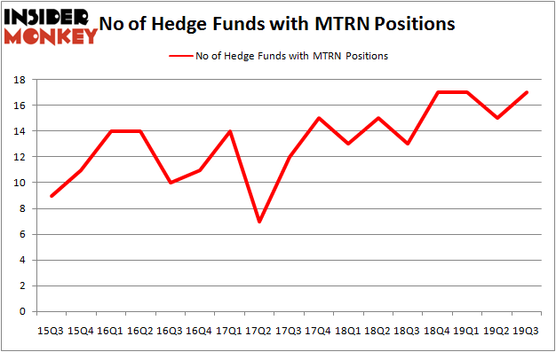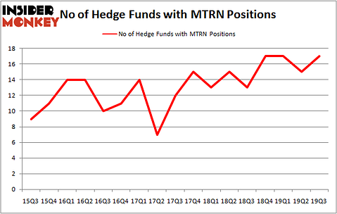 Heading into the fourth quarter of 2019, a total of 17 of the hedge funds tracked by Insider Monkey held long positions in this stock, a change of 13% from the previous quarter. By comparison, 13 hedge funds held shares or bullish call options in MTRN a year ago. So, let’s examine which hedge funds were among the top holders of the stock and which hedge funds were making big moves.