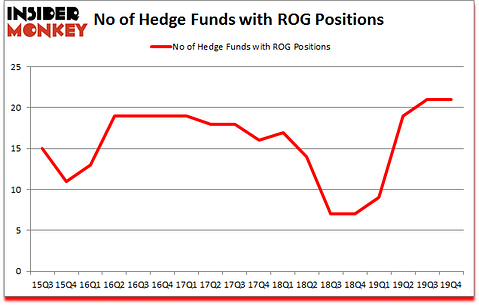 At Q4’s end, a total of 21 of the hedge funds tracked by Insider Monkey were bullish on this stock, a change of 0% from the third quarter of 2019. Below, you can check out the change in hedge fund sentiment towards ROG over the last 18 quarters. So, let’s find out which hedge funds were among the top holders of the stock and which hedge funds were making big moves.
