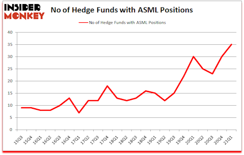 ASML Holding N.V. (NASDAQ:ASML) was in 35 hedge funds’ portfolios at the end of March. The all time high for this statistic was previously 30. This means the bullish number of hedge fund positions in this stock currently sits at its all time high. ASML has seen an increase in enthusiasm from smart money lately. There were 30 hedge funds in our database with ASML positions at the end of the fourth quarter. Our calculations also showed that ASML isn’t among the 30 most popular stocks among hedge funds (click for Q1 rankings).