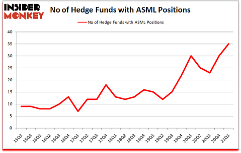 ASML Holding N.V. (NASDAQ:ASML) was in 35 hedge funds’ portfolios at the end of March. The all time high for this statistic was previously 30. This means the bullish number of hedge fund positions in this stock currently sits at its all time high. ASML has seen an increase in enthusiasm from smart money lately. There were 30 hedge funds in our database with ASML positions at the end of the fourth quarter. Our calculations also showed that ASML isn’t among the 30 most popular stocks among hedge funds (click for Q1 rankings).