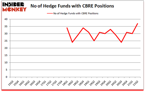 CBRE Group, Inc. (NYSE:CBRE) was in 37 hedge funds’ portfolios at the end of the second quarter of 2021. The all time high for this statistic was previously 34. This means the bullish number of hedge fund positions in this stock currently sits at its all time high. CBRE has experienced an increase in activity from the world’s largest hedge funds of late. There were 30 hedge funds in our database with CBRE holdings at the end of March. Our calculations also showed that CBRE isn’t among the 30 most popular stocks among hedge funds (click for Q2 rankings).