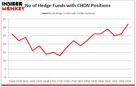 At Q4’s end, a total of 32 of the hedge funds tracked by Insider Monkey were bullish on this stock, a change of 23% from one quarter earlier. On the other hand, there were a total of 26 hedge funds with a bullish position in CHDN a year ago. With the smart money’s capital changing hands, there exists an “upper tier” of noteworthy hedge fund managers who were boosting their holdings considerably (or already accumulated large positions).