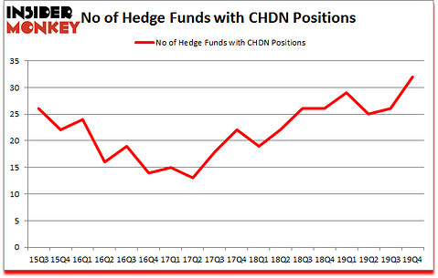 At Q4’s end, a total of 32 of the hedge funds tracked by Insider Monkey were bullish on this stock, a change of 23% from one quarter earlier. On the other hand, there were a total of 26 hedge funds with a bullish position in CHDN a year ago. With the smart money’s capital changing hands, there exists an “upper tier” of noteworthy hedge fund managers who were boosting their holdings considerably (or already accumulated large positions).