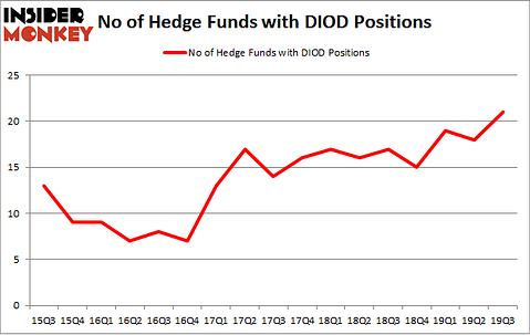 Is Diodes Incorporated (NASDAQ:DIOD) a cheap stock to buy now? Money managers are getting more bullish. The number of bullish hedge fund bets rose by 3 lately. Our calculations also showed that DIOD isn’t among the 30 most popular stocks among hedge funds (click for Q3 rankings and see the video below for Q2 rankings). DIOD was in 21 hedge funds’ portfolios at the end of the third quarter of 2019. There were 18 hedge funds in our database with DIOD holdings at the end of the previous quarter.