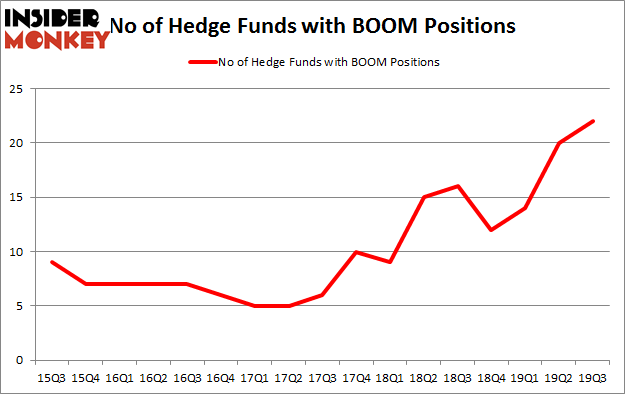 At Q3’s end, a total of 22 of the hedge funds tracked by Insider Monkey were long this stock, a change of 10% from one quarter earlier. Below, you can check out the change in hedge fund sentiment towards BOOM over the last 17 quarters. With the smart money’s capital changing hands, there exists an “upper tier” of notable hedge fund managers who were increasing their holdings meaningfully (or already accumulated large positions).