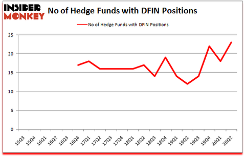 Donnelley Financial Solutions, Inc. (NYSE:DFIN) was in 23 hedge funds’ portfolios at the end of the second quarter of 2020. The all time high for this statistics is 22. This means the bullish number of hedge fund positions in this stock currently sits at its all time high. DFIN has seen an increase in hedge fund interest in recent months. There were 18 hedge funds in our database with DFIN positions at the end of the first quarter. Our calculations also showed that DFIN isn’t among the 30 most popular stocks among hedge funds (click for Q2 rankings and see the video for a quick look at the top 5 stocks).