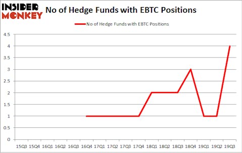 At Q3’s end, a total of 4 of the hedge funds tracked by Insider Monkey held long positions in this stock, a change of 300% from the previous quarter. On the other hand, there were a total of 2 hedge funds with a bullish position in EBTC a year ago. With hedge funds’ capital changing hands, there exists a few key hedge fund managers who were adding to their stakes substantially (or already accumulated large positions).