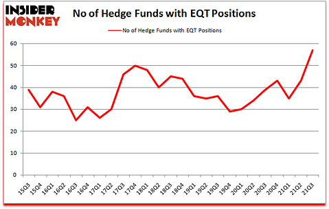 EQT Corporation (NYSE:EQT) shareholders have witnessed an increase in enthusiasm from smart money in recent months. EQT Corporation (NYSE:EQT) was in 57 hedge funds’ portfolios at the end of the third quarter of 2021. The all time high for this statistic was previously 50. This means the bullish number of hedge fund positions in this stock currently sits at its new all time high. There were 43 hedge funds in our database with EQT holdings at the end of June. Our calculations also showed that EQT isn’t among the 30 most popular stocks among hedge funds (click for Q3 rankings).