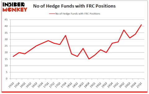 First Republic Bank (NYSE:FRC) investors should pay attention to an increase in enthusiasm from smart money in recent months. First Republic Bank (NYSE:FRC) was in 41 hedge funds’ portfolios at the end of the first quarter of 2021. The all time high for this statistic was previously 37. This means the bullish number of hedge fund positions in this stock currently sits at its all time high. There were 34 hedge funds in our database with FRC positions at the end of the fourth quarter. Our calculations also showed that FRC isn’t among the 30 most popular stocks among hedge funds (click for Q1 rankings).