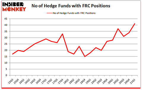 First Republic Bank (NYSE:FRC) investors should pay attention to an increase in enthusiasm from smart money in recent months. First Republic Bank (NYSE:FRC) was in 41 hedge funds’ portfolios at the end of the first quarter of 2021. The all time high for this statistic was previously 37. This means the bullish number of hedge fund positions in this stock currently sits at its all time high. There were 34 hedge funds in our database with FRC positions at the end of the fourth quarter. Our calculations also showed that FRC isn’t among the 30 most popular stocks among hedge funds (click for Q1 rankings).