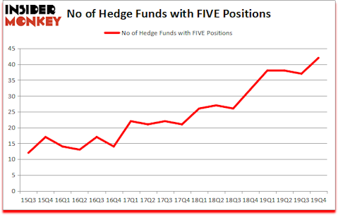 Five Below Inc (NASDAQ:FIVE) investors should pay attention to an increase in support from the world’s most elite money managers of late. FIVE was in 42 hedge funds’ portfolios at the end of the fourth quarter of 2019. There were 37 hedge funds in our database with FIVE positions at the end of the previous quarter. Our calculations also showed that FIVE isn’t among the 30 most popular stocks among hedge funds (click for Q4 rankings and see the video below for Q3 rankings).