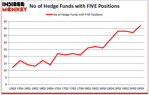 Five Below Inc (NASDAQ:FIVE) investors should pay attention to an increase in support from the world’s most elite money managers of late. FIVE was in 42 hedge funds’ portfolios at the end of the fourth quarter of 2019. There were 37 hedge funds in our database with FIVE positions at the end of the previous quarter. Our calculations also showed that FIVE isn’t among the 30 most popular stocks among hedge funds (click for Q4 rankings and see the video below for Q3 rankings).