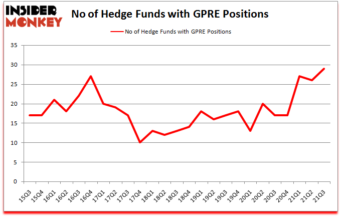 At Q3’s end, a total of 29 of the hedge funds tracked by Insider Monkey were long this stock, a change of 12% from one quarter earlier. The graph below displays the number of hedge funds with bullish position in GPRE over the last 25 quarters. With the smart money’s sentiment swirling, there exists a select group of noteworthy hedge fund managers who were boosting their stakes significantly (or already accumulated large positions).