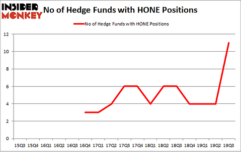 At the end of the third quarter, a total of 11 of the hedge funds tracked by Insider Monkey were bullish on this stock, a change of 175% from one quarter earlier. Below, you can check out the change in hedge fund sentiment towards HONE over the last 17 quarters. With hedgies’ capital changing hands, there exists a select group of key hedge fund managers who were boosting their holdings meaningfully (or already accumulated large positions).