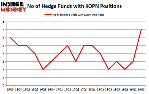 Last year’s fourth quarter was a rough one for investors and many hedge funds, which were naturally unable to overcome the big dip in the broad market, as the S&P 500 fell by about 4.8% during 2018 and average hedge fund losing about 1%. The Russell 2000, composed of smaller companies, performed even worse, trailing the S&P by more than 6 percentage points, as investors fled less-known quantities for safe havens. Luckily hedge funds were shifting their holdings into large-cap stocks. The 20 most popular hedge fund stocks actually generated an average return of 37.4% in 2019 (through the end of November) and outperformed the S&P 500 ETF by 9.9 percentage points. We are done processing the latest 13F filings and in this article we will study how hedge fund sentiment towards Kopin Corporation (NASDAQ:KOPN) changed during the first quarter.