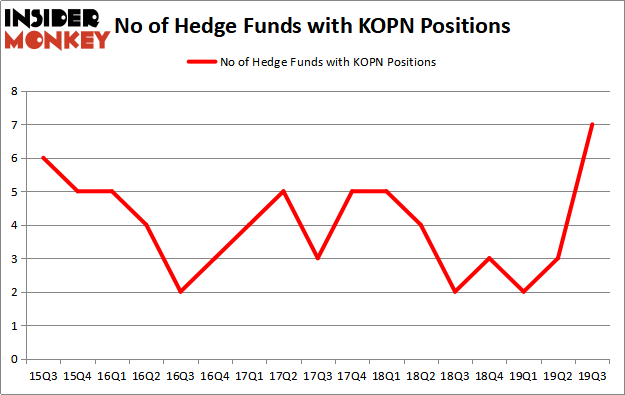 Kopin Corporation (NASDAQ:KOPN) was in 7 hedge funds’ portfolios at the end of September. KOPN shareholders have witnessed an increase in enthusiasm from smart money lately. There were 3 hedge funds in our database with KOPN holdings at the end of the previous quarter. Our calculations also showed that KOPN isn’t among the 30 most popular stocks among hedge funds (click for Q3 rankings and see the video below for Q2 rankings).