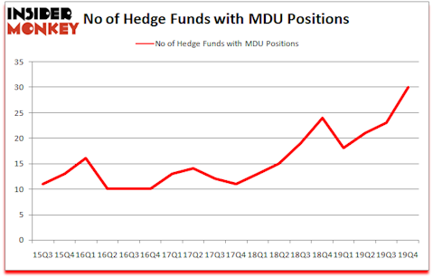 Heading into the first quarter of 2020, a total of 30 of the hedge funds tracked by Insider Monkey were bullish on this stock, a change of 30% from the previous quarter. The graph below displays the number of hedge funds with bullish position in MDU over the last 18 quarters. With the smart money’s capital changing hands, there exists a few notable hedge fund managers who were increasing their holdings significantly (or already accumulated large positions).