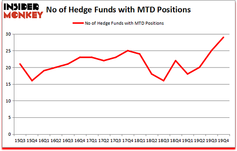 Is Mettler-Toledo International Inc. (NYSE:MTD) a cheap investment right now? Prominent investors are in an optimistic mood. The number of long hedge fund positions improved by 4 lately. Our calculations also showed that MTD isn’t among the 30 most popular stocks among hedge funds (click for Q4 rankings and see the video at the end of this article for Q3 rankings). MTD was in 29 hedge funds’ portfolios at the end of the fourth quarter of 2019. There were 25 hedge funds in our database with MTD holdings at the end of the previous quarter.