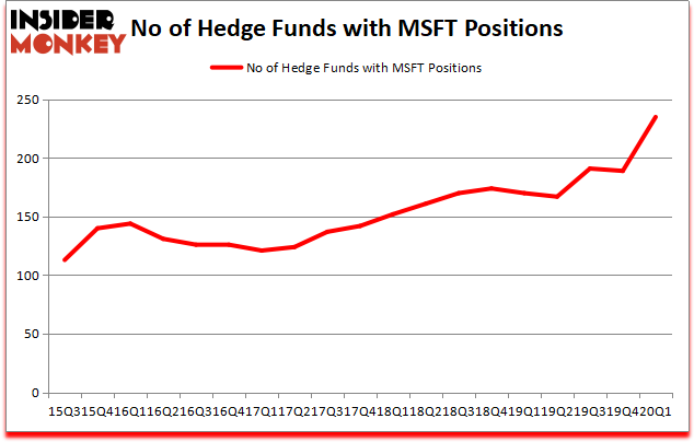 Heading into the second quarter of 2020, a total of 235 of the hedge funds tracked by Insider Monkey were long this stock, a change of 24% from the previous quarter. Below, you can check out the change in hedge fund sentiment towards MSFT over the last 18 quarters. So, let’s find out which hedge funds were among the top holders of the stock and which hedge funds were making big moves.