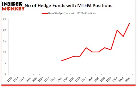 At the end of the second quarter, a total of 23 of the hedge funds tracked by Insider Monkey were bullish on this stock, a change of 35% from one quarter earlier. The graph below displays the number of hedge funds with bullish position in MTEM over the last 20 quarters. With the smart money’s capital changing hands, there exists a few key hedge fund managers who were boosting their holdings meaningfully (or already accumulated large positions).