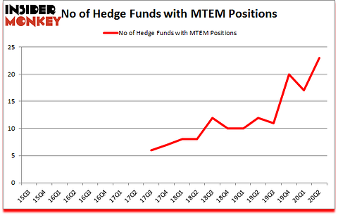 At the end of the second quarter, a total of 23 of the hedge funds tracked by Insider Monkey were bullish on this stock, a change of 35% from one quarter earlier. The graph below displays the number of hedge funds with bullish position in MTEM over the last 20 quarters. With the smart money’s capital changing hands, there exists a few key hedge fund managers who were boosting their holdings meaningfully (or already accumulated large positions).