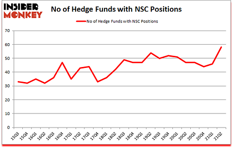 Is Norfolk Southern Corp. (NYSE:NSC) a buy here? Investors who are in the know were turning bullish. The number of bullish hedge fund positions improved by 12 in recent months. Norfolk Southern Corp. (NYSE:NSC) was in 58 hedge funds’ portfolios at the end of the second quarter of 2021. The all time high for this statistic is 54. This means the bullish number of hedge fund positions in this stock currently sits at its all time high. Our calculations also showed that NSC isn’t among the 30 most popular stocks among hedge funds (click for Q2 rankings).