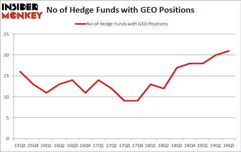 Heading into the fourth quarter of 2019, a total of 21 of the hedge funds tracked by Insider Monkey were long this stock, a change of 5% from the second quarter of 2019. Below, you can check out the change in hedge fund sentiment towards GEO over the last 17 quarters. With hedgies’ positions undergoing their usual ebb and flow, there exists a few noteworthy hedge fund managers who were boosting their holdings substantially (or already accumulated large positions).