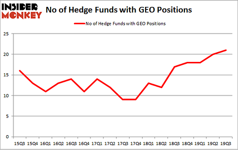 Heading into the fourth quarter of 2019, a total of 21 of the hedge funds tracked by Insider Monkey were long this stock, a change of 5% from the second quarter of 2019. Below, you can check out the change in hedge fund sentiment towards GEO over the last 17 quarters. With hedgies’ positions undergoing their usual ebb and flow, there exists a few noteworthy hedge fund managers who were boosting their holdings substantially (or already accumulated large positions).