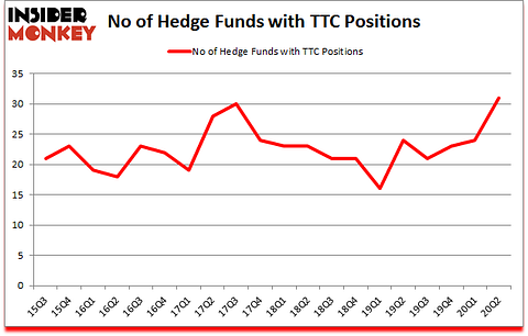At the end of the second quarter, a total of 31 of the hedge funds tracked by Insider Monkey were bullish on this stock, a change of 29% from the previous quarter. On the other hand, there were a total of 24 hedge funds with a bullish position in TTC a year ago. So, let’s examine which hedge funds were among the top holders of the stock and which hedge funds were making big moves.
