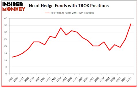 Tronox Holdings Plc (NYSE:TROX) investors should be aware of an increase in hedge fund sentiment in recent months. Tronox Holdings Plc (NYSE:TROX) was in 36 hedge funds’ portfolios at the end of March. The all time high for this statistic was previously 33. This means the bullish number of hedge fund positions in this stock currently sits at its all time high. There were 25 hedge funds in our database with TROX positions at the end of the fourth quarter. Our calculations also showed that TROX isn’t among the 30 most popular stocks among hedge funds (click for Q1 rankings).