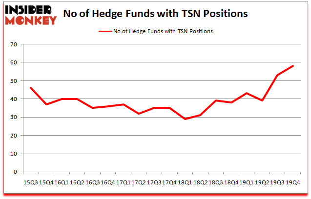 At the end of the fourth quarter, a total of 58 of the hedge funds tracked by Insider Monkey were long this stock, a change of 9% from one quarter earlier. On the other hand, there were a total of 38 hedge funds with a bullish position in TSN a year ago. With hedge funds’ capital changing hands, there exists a select group of key hedge fund managers who were adding to their holdings meaningfully (or already accumulated large positions).