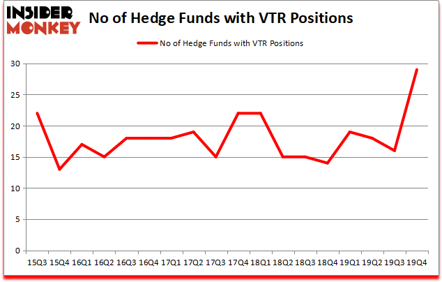 Ventas, Inc. (NYSE:VTR) shareholders have witnessed an increase in hedge fund sentiment recently. VTR was in 29 hedge funds’ portfolios at the end of December. There were 16 hedge funds in our database with VTR holdings at the end of the previous quarter. Our calculations also showed that VTR isn’t among the 30 most popular stocks among hedge funds (click for Q4 rankings and see the video below for Q3 rankings).