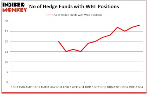 At the end of the fourth quarter, a total of 28 of the hedge funds tracked by Insider Monkey held long positions in this stock, a change of 4% from the previous quarter. The graph below displays the number of hedge funds with bullish position in WBT over the last 18 quarters. So, let’s review which hedge funds were among the top holders of the stock and which hedge funds were making big moves.