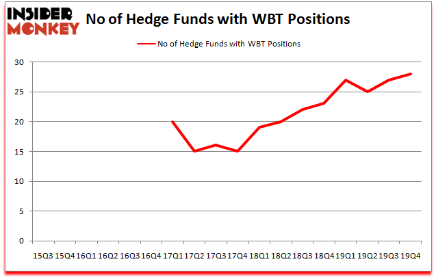At the end of the fourth quarter, a total of 28 of the hedge funds tracked by Insider Monkey held long positions in this stock, a change of 4% from the previous quarter. The graph below displays the number of hedge funds with bullish position in WBT over the last 18 quarters. So, let’s review which hedge funds were among the top holders of the stock and which hedge funds were making big moves.