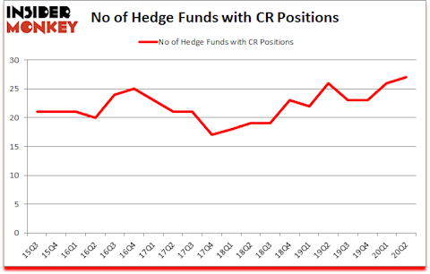At second quarter’s end, a total of 27 of the hedge funds tracked by Insider Monkey were bullish on this stock, a change of 4% from the previous quarter. Below, you can check out the change in hedge fund sentiment towards CR over the last 20 quarters. With hedge funds’ positions undergoing their usual ebb and flow, there exists a few notable hedge fund managers who were adding to their holdings meaningfully (or already accumulated large positions).