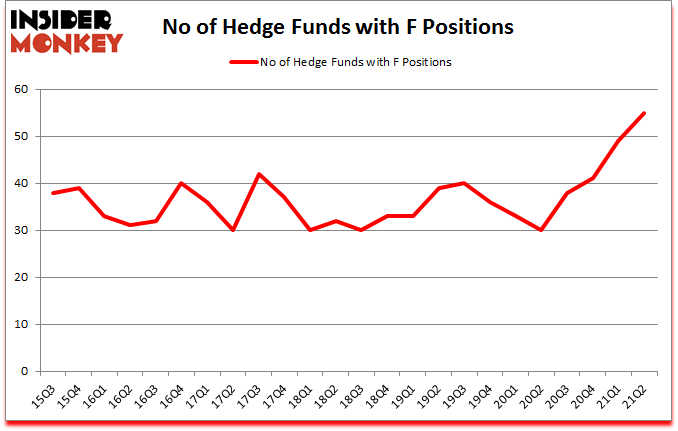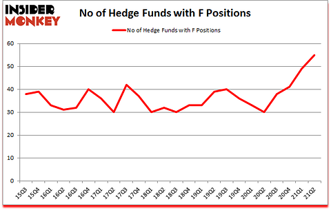 Is Ford Motor Company (NYSE:F) the right pick for your portfolio? Investors who are in the know were in an optimistic mood. The number of long hedge fund bets inched up by 6 recently. Ford Motor Company (NYSE:F) was in 55 hedge funds’ portfolios at the end of the second quarter of 2021. The all time high for this statistic was previously 49. This means the bullish number of hedge fund positions in this stock currently sits at its all time high. Our calculations also showed that F isn’t among the 30 most popular stocks among hedge funds (click for Q2 rankings). There were 49 hedge funds in our database with F positions at the end of the first quarter.