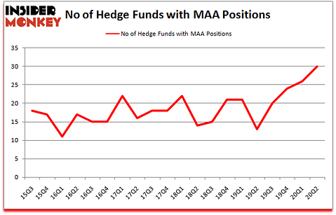 Is Mid America Apartment Communities Inc (NYSE:MAA) a worthy investment now? The smart money was taking a bullish view. The number of bullish hedge fund positions increased by 4 recently. Mid America Apartment Communities Inc (NYSE:MAA) was in 30 hedge funds’ portfolios at the end of the second quarter of 2020. The all time high for this statistics is 26. This means the bullish number of hedge fund positions in this stock currently sits at its all time high. Our calculations also showed that MAA isn’t among the 30 most popular stocks among hedge funds (click for Q2 rankings and see the video for a quick look at the top 5 stocks).