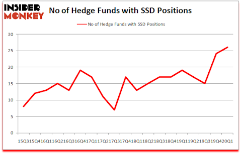 At Q1’s end, a total of 26 of the hedge funds tracked by Insider Monkey were long this stock, a change of 8% from one quarter earlier. Below, you can check out the change in hedge fund sentiment towards SSD over the last 18 quarters. So, let’s examine which hedge funds were among the top holders of the stock and which hedge funds were making big moves.